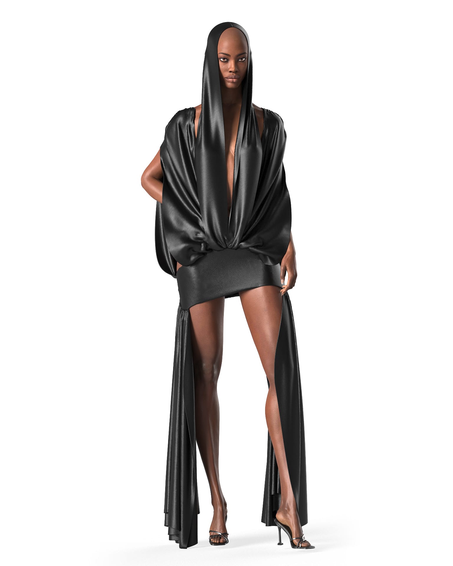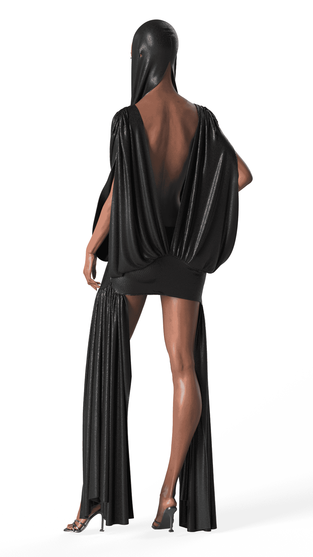 As the name implies the Stableté dress is an elegant combination form and function, treading the fine lines of coverage and reveal. This gives its captivating silhouette and a perfect evening dress and statement piece in one form.